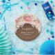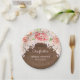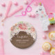 Brautparty Party Teller mit individuellem Namen mit rustikal braunem Holzmuster und hellrosa Aquarell Vintage Blume.