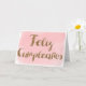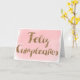 Ein rosa Aquarell und Gold Glitzer Feliz Cumpleanos Spanische Geburtstagskarte. Bitte beachten Sie, dass es keinen Glitzer für dieses Produkt gibt, sondern einen Designeffekt. Sie können die innere Nachricht leicht personalisieren und das Jahr auf der Rückseite hinzufügen.