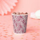 Lass deinen Party-Gästen stilvoll zu speisen mit diesen eleganten Weihnachts-Kardinal-Vogelbechern, die mit handgemalten Aquarellvögeln und Baumästen versehen sind, die das Muster von OhMyStarling wiederholen! Das Muster wird auf einem hellrötlich-rosa Hintergrund dargestellt.