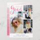 Moderne typografische rosa Aquarellschrift "grad" Schrift, 3-Foto Kollage Stil Ankündigung Abschluss mit rosa Aquarellfarben ombre Muster Rückseite.