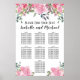 Schöne rosa Blumenkarte für eine Hochzeit im Sommer oder Frühjahr. Dunkelrosa und hellrosa Blume sehen wunderschön aus, und die Vegetation ist vielfältig. Bitte finden Sie Ihren Sitzplatz in einem schlichten und eleganten Schriftart. Die Braut- und Bräutigamen werden unten in einem romantischen Skript-Schriftart geschrieben. Es ist sehr einfach, diese und die Tabellen unten zu bearbeiten.