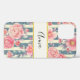 Ein Telefongehäuse mit einem wunderschönen Muster mit hübschen rosa Blume, die über einem gestreiften Muster aus blauen und cremefarbenen Streifen angeordnet sind. Ein Rechteck mit einem Imitat mit einem goldenen Rahmen, der oben platziert ist und in dem sich der personalisierte Text befindet.