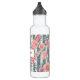 Wasserflasche mit einem wunderschönen Muster mit hübschen rosa Blume, die über einem gestreiften Muster aus blauen und cremefarbenen Streifen liegen. Ein Rechteck mit einem Imitat mit einem goldenen Rahmen, der oben mit dem personalisierten Text überlagert ist.