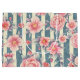 Große Geschenktüte mit einem wunderschönen Muster mit hübschen rosa Blume, die auf einem gestreiften Muster aus blauen und cremefarbenen Streifen liegen.