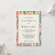 Eine Hochzeitseinladung mit einem wunderschönen Muster, hübsche rosa Blume, die über einem gestreiften Muster aus blauen und cremefarbenen Streifen liegen. Ein Rechteck mit einem Imitat mit einem goldenen Rahmen, der oben mit dem personalisierten Text überlagert ist.