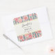Seife- oder Kerzenduftkleber mit einem wunderschönen Muster aus hübsch rosa Blume, die über einem gestreiften Muster aus blauen und cremefarbenen Streifen liegen. Ein cremefarbenes Rechteck mit einem Imitat mit goldenen Rahmen, oben platziert und innen mit dem personalisierten Text.