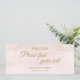 Pink Watercolor Gold Type Hochzeitsstatue bietet ein elegantes, aber minimalistisches und vielseitiges Design. Die Farbtöne von Korallen, Pfirsich, Rose, Lila und staubige Rose in den rosafarbenen Aquarellfarben vermitteln einen Sonnenaufgang oder Sonnenuntergang, der mit einem minimalen vergoldeten Glitzer und der Goldkalligraphie geschmückt ist und ein zartes und elegantes, aber dennoch einzigartiges und schlichtes Design schafft. Verwenden Sie dieses Kopfhörer-Begrüßungszeichen mit Ihrem kreativen Sitzplan-Layout, um Ihren Gästen zu helfen, ihre Sitzplätze zu finden.