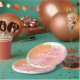 Rosa Aquarellfarben mit Tellern der Goldenen Gradu Pappteller