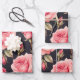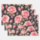 Rosa Aquarellfarben-Rose auf schwarzem Hintergrund Geschenkpapier Set