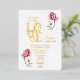 Rosa Aquarellfarben Rose und Goldene Fohlen Einlad Folieneinladung