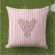 Ein Kissen im Freien, das mit einem aufgehenden rosa Phönix dekoriert ist, wobei die rosa Streifen mit Prägung konturiert wirken. Sauberes, komfortables Design. Bildcode: phnx