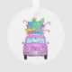 Rosa Auto mit Weihnachtsgeschenken Wasserfarbe Ornament