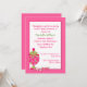 Hübsche Einladung zum Thema Babydusche mit Süßigkeiten vom Buffet. Die Grafik eines knusprigen rosa und grüne Süßspeise und die leicht eingewickelte Süßspeise schmücken die links untere Ecke der rosa-weißen Einladung. Text in Rosa und Grün ist bereit für Ihre spezielle Veranstaltung personalisieren.