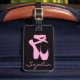 Stehen Sie heraus mit diesem schönen Gepäckumbau, der rosa Ballett-Pantoffel auf schwarzem Imitat Glitzer-Umbau kennzeichnet. Vervollkommnen Sie Weise, damit die Ballerina ihre Tasche etikettiert und zu vermeiden mischen Sie ups. Personifizieren Sie sie mit Ihrem Namen!