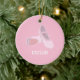 Erstellen Sie ein personalisiertes Weihnachtsschmuck, das perfekt für Mädchen ist, die Ballett Liebe. An der Vorderseite dieses Ornaments befindet sich eine Illustration eines Ballettschuhpaars oder Hausschuhen in hellrosa mit einem Namen unter Set vor einem dunkelrosa Hintergrund. Die Rückseite ist bereit, mit Ihrem eigenen Foto angepasst zu werden.