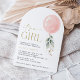 Rosa Ballon, Eukalyptus, Grünpflanzen, Babydusche Einladung