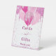 Ein Party-Tischschild für Karten und Geschenke. Weiß mit eleganten Imitaten Glitzern und pastellrosa und heiß rosa Ballons. Rosa Buchstaben.