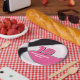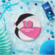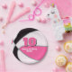 Diese Basketball-Party-Platte für einen Basketball-Geburtstag oder ein Team-Party zeigt das Bild eines Basketballs mit abwechselnden rosa, weißen und schwarzen Tafeln - den Text in Rosa und Weiß anpassen - von katz_d_zynes
