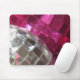 Eine Sammlung glitzernder Weihnachtsbaumbläser in Rosa und Silber. Mousepad mit rosa, silber, schwarz und weiß anpassbarem Design für Sie, um mit Ihrem eigenen Text, Bildern und Ideen zu personalisieren. Erstellt mit einem Originalfoto und digitalen Techniken von Jess Perry.