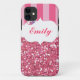 Erhalten Sie diesen niedlichen rosa kundenspezifischen Glitterblick "behalten Ruhe und funkeln auf" Iphone 5 Fall. Vervollkommnen Sie, um eine Touch des Scheins Ihrem IPhone hinzuzufügen! reizendes girly Geschenk mit Glittereffekt, rosa Streifen und Herzen. Personifizieren Sie mit Ihrem Namen!