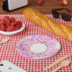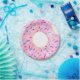 Rosa Krapfen mit besprüht Poolfloss-Party, das Teller für jedes themed Ereignis des Pools oder des Strandes perfekt ist.