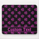 Schwarzes Mousepad mit einem sich wiederholenden Biogefährdung-Symbolmuster in hellrosa und bearbeitbarem Textfeld, personalisieren Sie mit bis zu 15 Buchstaben, Ziffern oder Symbolen.