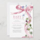 Elegante Bow Ribbon Wildblume Pink Baby Dusche Einladung Pink Bläserbow Wildblume Kinderdusche Diese elegante Einladung bietet einen schönen rosa Bogen, zarte Aquarellfarben Wildblumen und klassische Typografie.