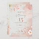 Feiern Sie einen besonderen Meilenstein mit dieser eleganten, rosa blumengeschmückten 15. Geburtstagsfeier. Dieses Design mit zarten Aquarellfloralen und modernen Schriften eignet sich perfekt für einen süßen 15., quinceañera oder femininen Geburtstagsbash. Vollständig anpassbar für den Stil und die Details Ihrer Veranstaltung.
