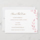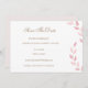 Das botanische Design mit rosafarbenem Blattwerk und elegantem goldfarbenem Drehbuch auf weißem Hintergrund vorne und hellrosa Hintergrund auf der Rückseite. Die Einladung zur Abstimmung finden Sie unter: https://www.zazzle.com/blush_pink_foliage_leaves_white_elegant_wedding_invitation-256633509868541792