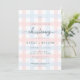 Feiern Sie die Taufe Ihrer Zwillinge mit dieser klassischen Gingham-Taufeinladung. Das Design verfügt über ein zeitloses Gingham-Muster, das mit eleganter, handgeschriebener Typografie kombiniert wird und einen traditionellen und charmanten Look für diesen besonderen Anlass schafft.