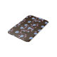 Geflecktes Bad oder Bodenmatte in Rosa, Blau und Schokoladenbraun. Der dunkelbraune Hintergrund kann in eine beliebige Farbe geändert werden, die mit der Wohngestaltung übereinstimmt.