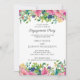 Helle und farbenfrohe botanische Rosa, Gelb und Blau Aquarellgarten Blumen auf weißer Einladung zur Party