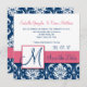 Rosa blaue Damaske Monogram Save the Date