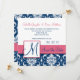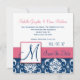 Stilvolle Hochzeit Sichern Sie die Datumskarten mit Navy Blue und White Damask Muster, Monogramm oder Initial, Namen mit rosa Akzent Farben. Hochzeitsdesign von Elke Clarke ©2009. lizenzierte Grafiken. Passen Sie Ihre Monografie, Namen und Informationen zur Hochzeitseinladung an. Wählen Sie auch aus einer Vielzahl von Schriftart und schönen Papieren, um Ihre Hochzeitseinladungen FABULOUS zu machen! Kontaktieren Sie uns für Farbveränderungen unter luxuryweddinginvitations@gmail.com