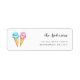 Das süße Rücksendeetikett mit rosa und blauem Eis auf Waffeltönen. Passen Sie dieses Produkt an, indem Sie Ihren Namen und Ihre Adresse hinzufügen. Verwenden Sie dieses Etikett, wenn Sie Ihre Eis-Themeneinladung für Gender-Offenlegung Party.