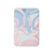 Eine abstrakte Badematte in Rosa, Blau und Weiß.