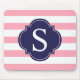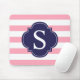Rosa blaue Streifen Monogramm Mousepad
