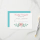 Dies ist ein heller und farbenfroher blumengeschmückter RSVP, der zu Einladungen in unserem Geschäft passt. Das Blumenbild im bohenhaften Stil ist in Rosa, Blau und Grün gehalten. Ihr eigener Text oben ist weich grau und passend Rose pink. Der Text und das Blumenbild werden auf einem weißen Hintergrund platziert. Die Rückseite der Karte ist blau.
