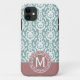 Rosa blaues Damast-Monogramm Case-Mate iPhone Hülle