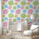 Rosa blaues gelbes Limettengrün Blumenmuster Tapete