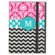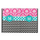 Zeigen Sie weg Ihre Art in einem Spaß und eine persönliche Weise mit diesem rosa, blauen und schwarzen Damast, Punkten und Zickzack Monogrammkasten.