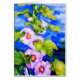 Original romantischer Hollyhock mit kleinen Hummeln Aquarell von H Cooper