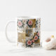 Schöne rosa Blume und kleine, weiße Blume überlagern die goldenen, grauen und weißen Quadrate und verleihen dieser Tasse ein Retro-modernes Aussehen.
