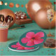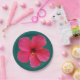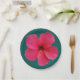 Fotografie einer hellen rosa tropischen Blume auf einem dunkelgrünen Hintergrund stellt diesen Spaß helle Papierplatte her.