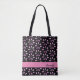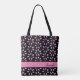 Moderne und schicke personalisierte Tasche mit rosa Blume Blumenmuster. Das Design zeichnet sich durch rosa Blume auf schwarzem Hintergrund aus. Füge Deinen Namen hinzu.