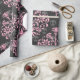 Heller rosa Blume-Damast auf grauem Hintergrund mit kleinen, durchdachten Schädeln. Ideal für Handwerkskunst, Geschenkverpackung und Entpackung. Bitte sehen Sie eine Nahbildvorschau, um sicherzustellen, dass sie akzeptabel ist.
