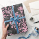 Rosa Blume Damask with Skulls on grau Geschenkpapier