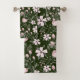 Rosa Blume dunkelgrüne Blätter moderne Blumen Badhandtuch Set