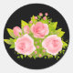 Rosa-Blume, floral, schwarz Runder Aufkleber