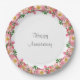 Rosa Blume Garland auf weißem Happy Anniversary Paper Plate. Text kann für andere Veranstaltungen personalisiert sein!